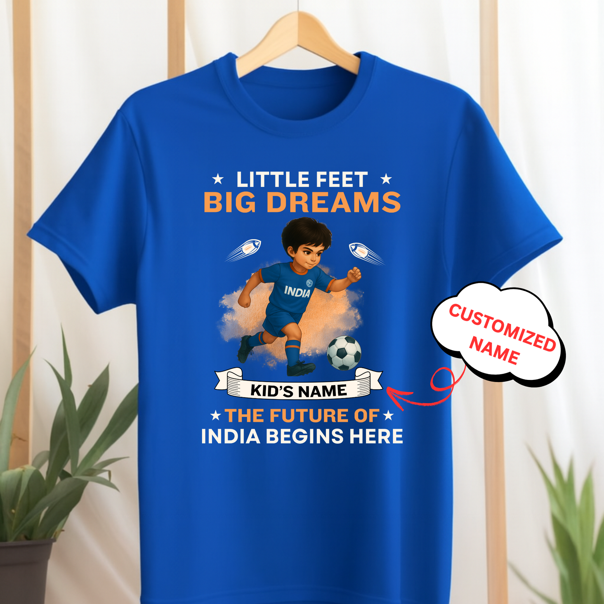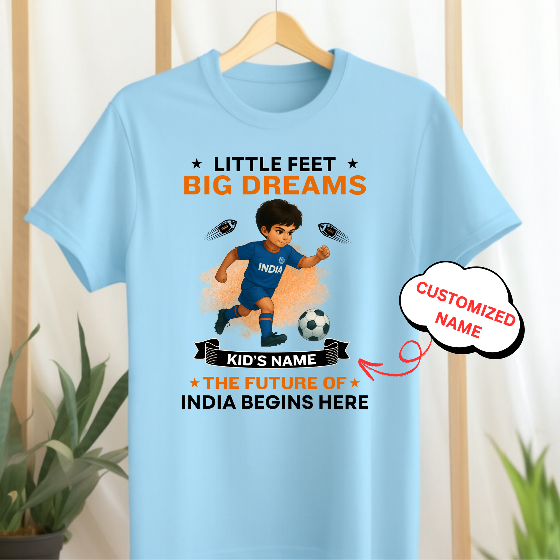 CUSTOMIZED-LITTLE FEET BIG DREAMS, THE FUTURE OF INDIA BEGINS HERE (FOOTBALL)-KIDS T-SHIRT